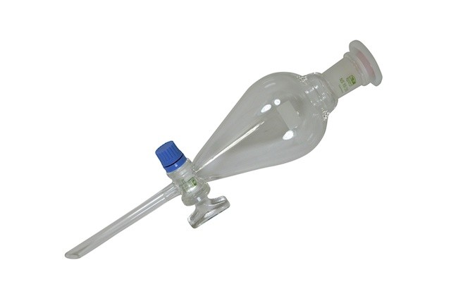 Dieser unbenutzte Kolben besteht aus hitzebeständigem Laborglas und stammt aus Lagerbeständen der ehemaligen DDR. Er eignet sich besonders für die Sammlung von Hydrolaten bei der Destillation. Er hat genau die Größe der maximalen Entnahmemenge der meldefreien 2-Liter-Destillen.