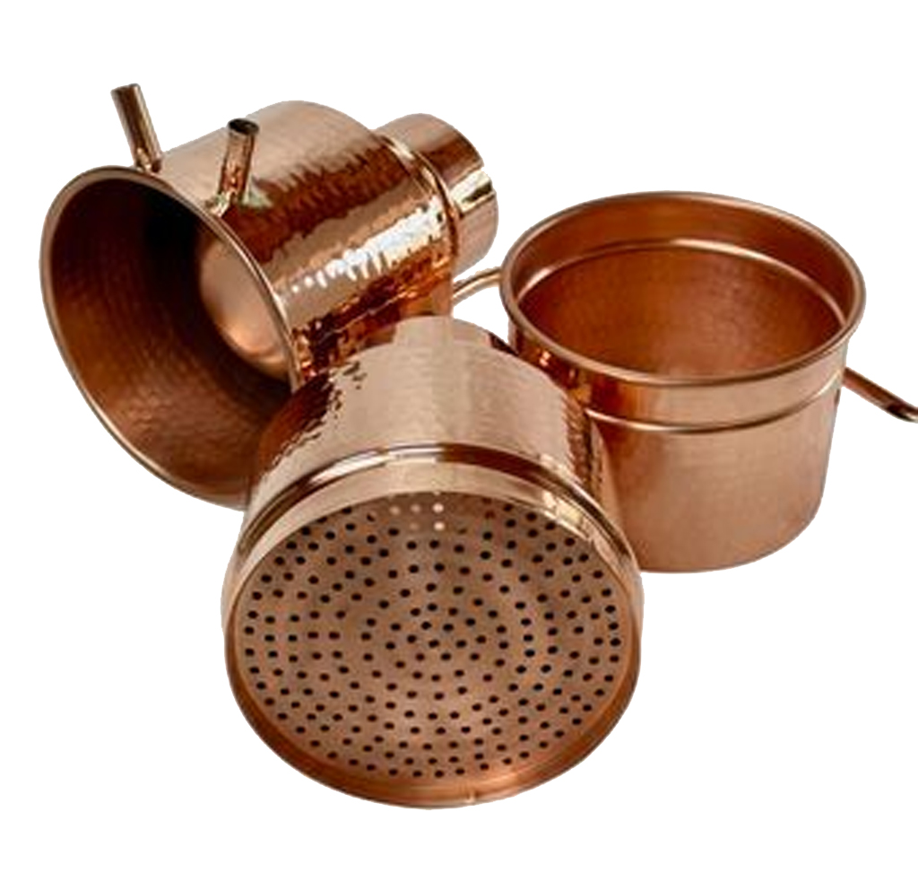 Die CopperGarden® LEONARDO besteht somit komplett aus Kupfer und ist zur Destillation ätherischer Öle und Hydrolate sicher eine gute Wahl. Es bleiben die Wege für den Dampf besonders kurz, die Destille bietet zugleich aber einen sehr großen Dampfraum zum Einlegen des Pflanzenmaterials.
