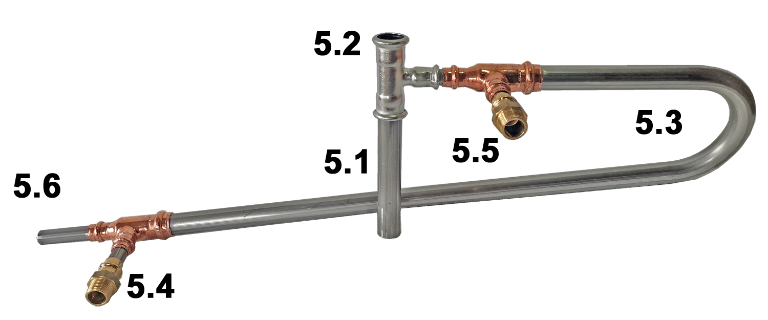 Bogen zum Aufstecken auf den Destillatauslauf 4.6. Diesen verwenden man, wenn alles auf einer Ebene steht, z. B. bei Verwendung eines Elektroherds.