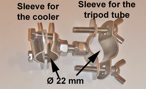 - Support the bridge 5 with the supplied stand tubes 6. and the cross sleeves 7. attached to the cooler (see below). The stand tubes are long enough to provide support even when using a higher heat source. The markings on the cooler and stand tubes are designed for a level setup. When using a raised heat source, simply move the mark up by the height of the heat source.